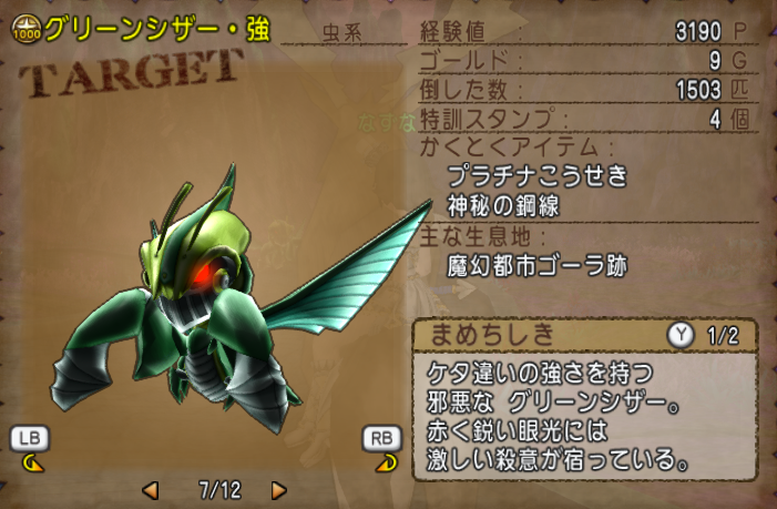 グリーンシザー・強は通ドロにプラチナこうせきを落としますので職人さんにとっても